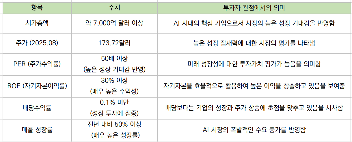 - AI 시장 선도: AI 혁명의 가장 큰 수혜주로서 지속적인 성장 잠재력 보유