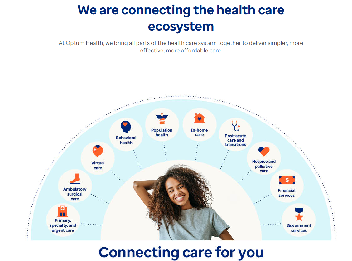 - Optum (의료 서비스 및 IT 부문) : Optum은 헬스케어 생태계를 기술 기반으로 통합·운영하는 유나이티드헬스의 플랫폼 중심 자회사로, 다음과 같은 기능을 수행합니다.