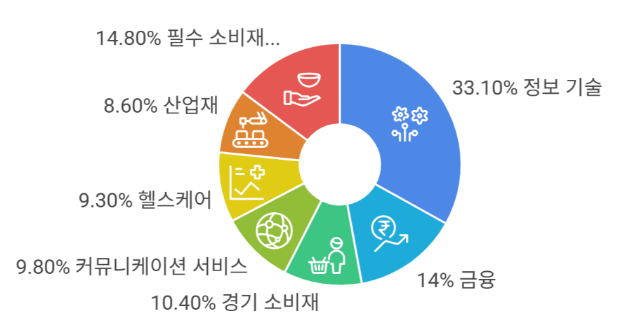 33.10% | 소프트웨어, 반도체, IT 서비스 등 (애플, 마이크로소프트, 엔비디아 등) |