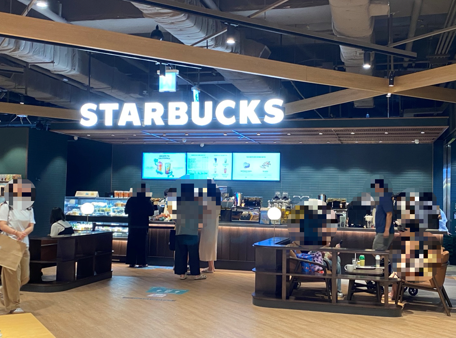 3층 주차장에서 에스컬레이터 타고 내려가니 바로 보이는 스타벅스!