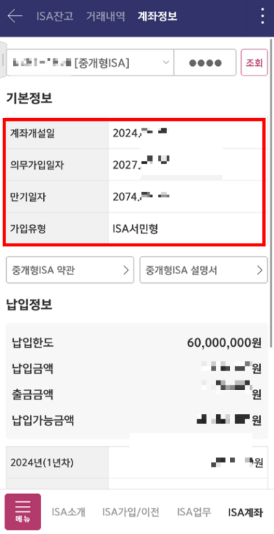 ISA 계좌 개설일을 확인하기 위해 앱을 열면,