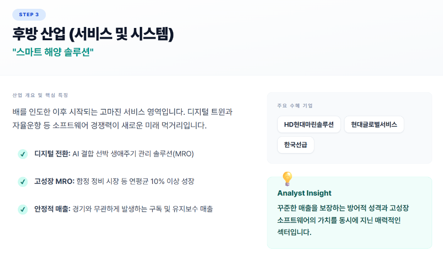 ③ 후방 산업 (서비스 및 시스템): "스마트 해양 솔루션"