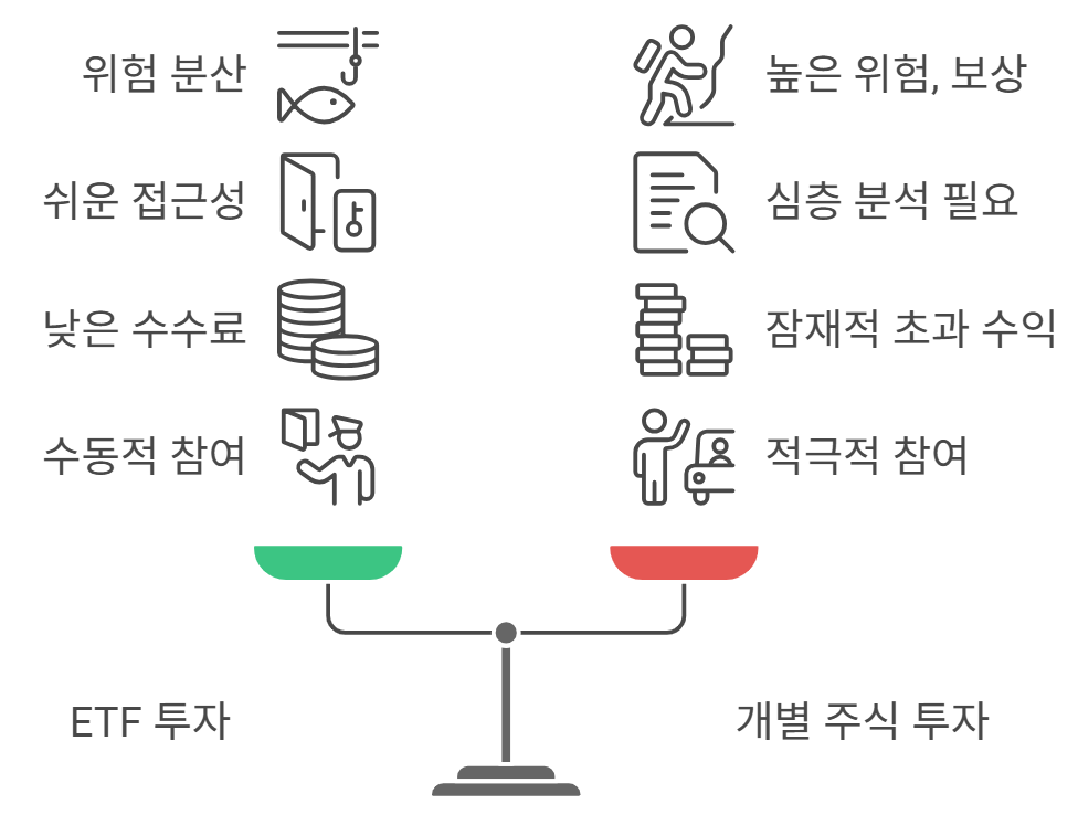 오늘은 ETF와 개별주 투자 방식의 핵심 차이점을 정리하고, 어떤 경우에 어떤 전략이 적합한지 살펴보겠습니다.