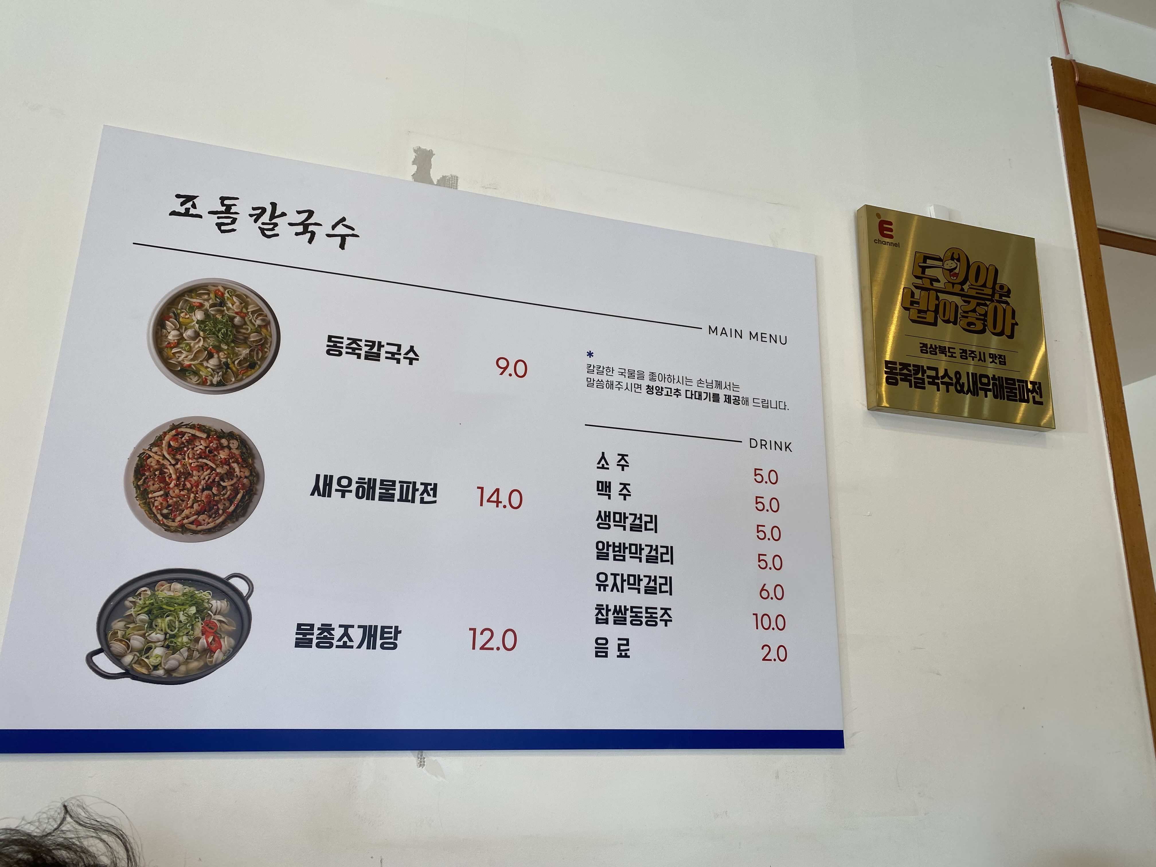 저희도 메인인 동죽칼국수 그리고 새우해물파전을 시키고 기다렸습니다.