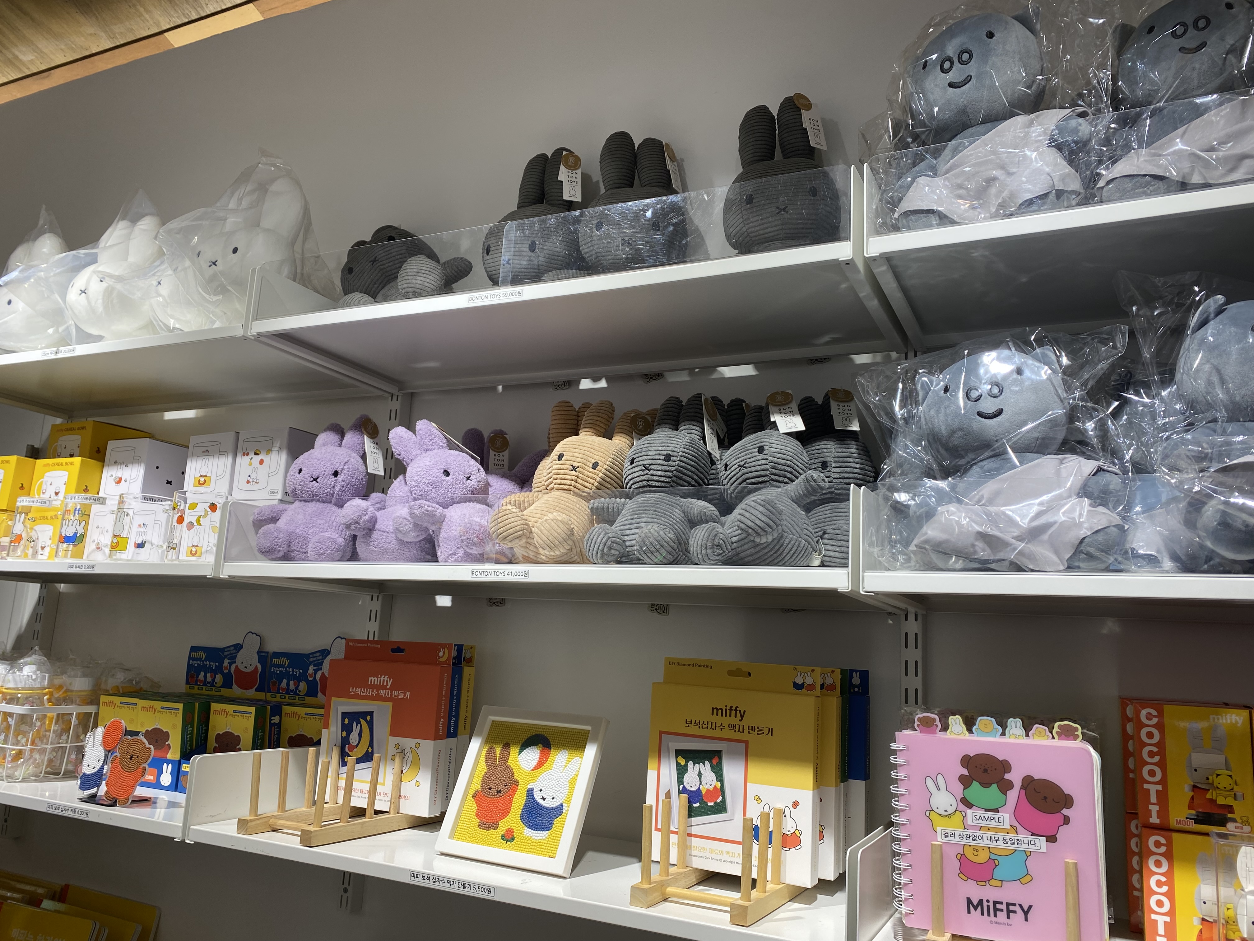 다양한 미피 굿즈들이 진열되어 있었습니다.
