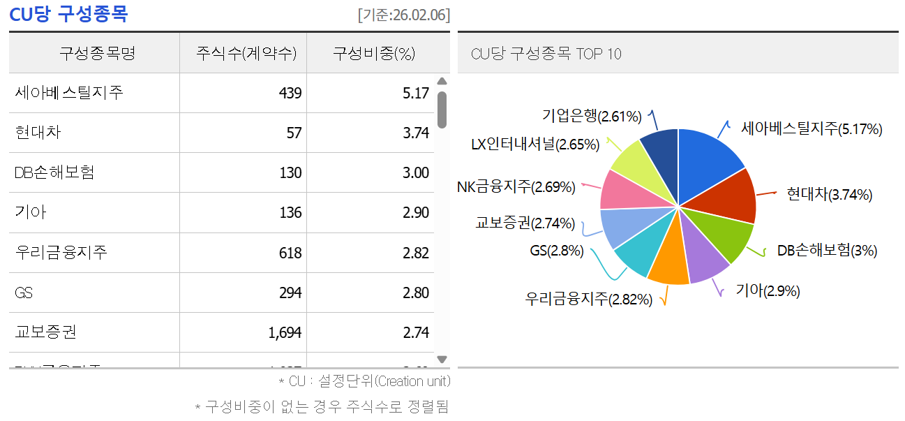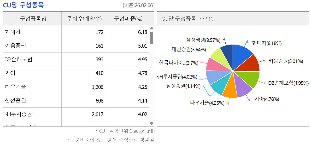 대형주 위주. 변동성이 낮고 시가총액 상위권 배당주로 구성