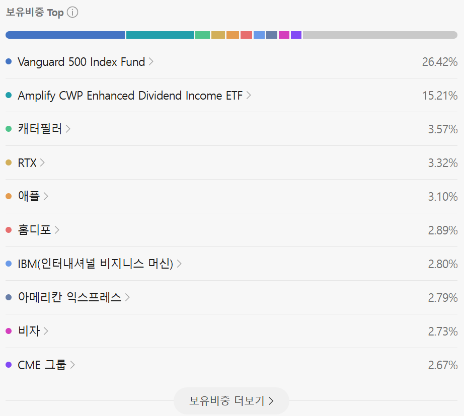 미국배당다우존스 지수에 커버드콜을 적용한 고배당 특화 상품. 월 현금흐름은 강점이나, 보수가 높아 장기 투자보다는 현금흐름 목적에 적합